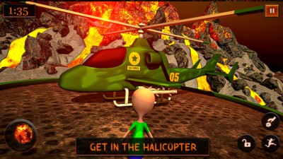 4、到达山顶,避开地面上的熔岩,在时间耗尽前跑到直升机旁,进入直升机并逃离