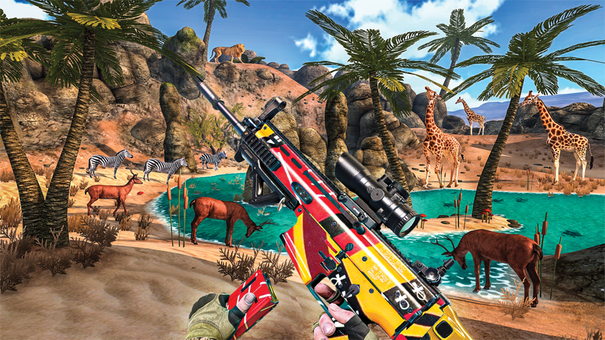 2、在地图上漫步并欣赏令人惊叹的环境!从家到山川,高端图形使游戏变得异常愉悦。逼真的动物,尽力追逐它们!