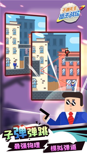 子弹先生狙击战场作为一款简约画风打造的射击闯关游戏,战场内的玩家需要控制角色进行熟练的升级作战,还可以不断的进行各种关卡内的闯关冒险,这游戏内的各种冒险节奏都是无比的复杂,玩家都得熟悉战场内的情况才能进行升级作战,占领最佳的射击位置给对手带来致命一击完成任务。