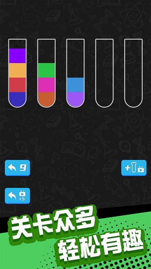 该游戏内的每一个关卡中,都包含了很多的杯子,并且杯子中有很多不同颜色的水混合在一起,玩家需要去尝试将水分离开来,很考验玩家的聪明智慧哦,如果感兴趣的话,就来下载一起尽情的挑战起来吧!