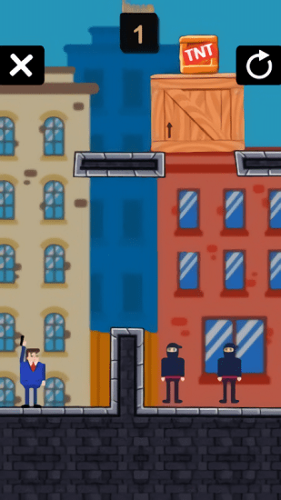 博克斯先生的游戏背景比较卡通,但不要因为卡通化就觉得这款游戏不好玩,这款游戏不简单是一款射击游戏,还得运用脑力去战胜对手。这一点很多射击游戏都没有做到。随着关卡越来越来,有时候甚至攻击不到敌人,那么这还会运用到物理学,利用关卡有的物品进行射击反弹来击倒对手。玩法比较简单轻松,画面没有太多杂乱特效,最朴实无华的射击往往给玩家带来最好的游戏体验,赶紧来下载吧。
