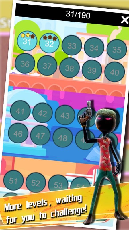 《火柴人先生:狙击手》是一款以简约火柴人风格来打造的射击战斗游戏,控制着火柴人在各种关卡场景中开始进行射击战斗,使用你的高超的射击技术来让更多的火柴人敌人倒在你的枪口之下。游戏有着众多的关卡,完成三星完美闯关的成就获得钻石来购买全新的火柴人角色。