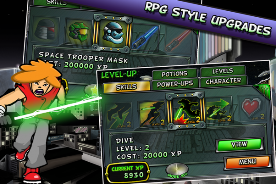 玩家不仅要躲避障碍在不停变换的场景中无尽奔跑下去,还要拿起帕拉斯之剑去虐杀敌人。玩家通过三个虚拟按键控制主人公的行动,让它完成奔跑、滑行、潜水、空中冲刺等高难度动作,非常锻炼玩家的灵敏度与快速反应。