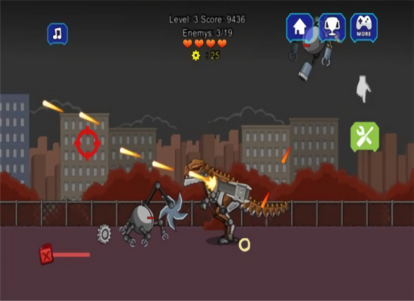 超强机甲恐龙是一款以机甲风格为原型的动作射击游戏,与往常的射击游戏类型不一样,采用恐龙机甲为外表,不一样的战斗方式带给你不一样的体验。模拟都市环境战斗,还可以升级恐龙进化伤害,逼近真实的战斗场景,更有各种不一样的战斗器械供你选择,可以自己组配零件,很适合创造能力优秀的人攻克玩耍,让你有非同一般的体验,疯狂战斗吧少年,快来下载感受吧。