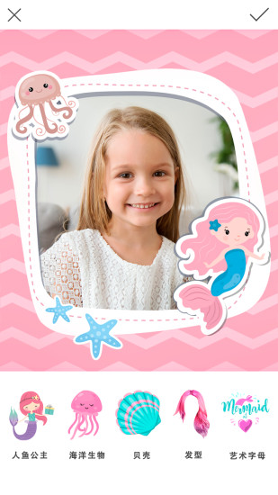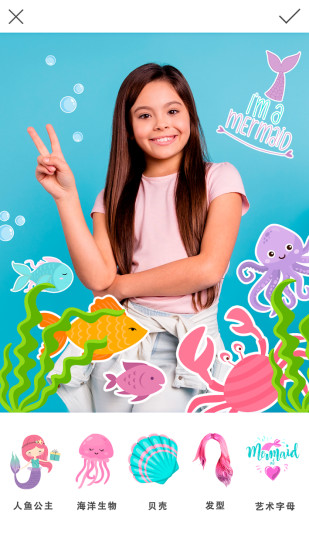 变身小公主游戏安卓最新版专为小女孩设计,这里有非常多的美人鱼相关贴纸,包括人鱼公主、贝壳、各种海洋生物、美人鱼发型、艺术花字等,让孩子轻松化身美人鱼公主,还可以拍照进行保存哦,喜爱的朋友赶快下载体验吧!
