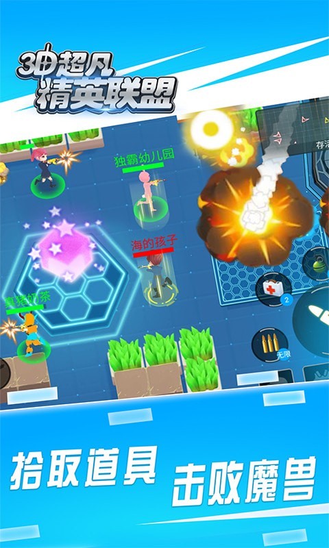 3D超凡精英联盟手游是一个随时可以去尝试更多卡通对枪体验的射击类游戏,整体的主题都是采用最新的卡通画风给人的感觉极为不错,全新的跳伞体验还有更多的联机对决都是需要你去参与其中,更多不同的对战内容都是等待着你去轻松解锁,操控着你自己喜欢的英雄就可以直接加入整个战场之中。