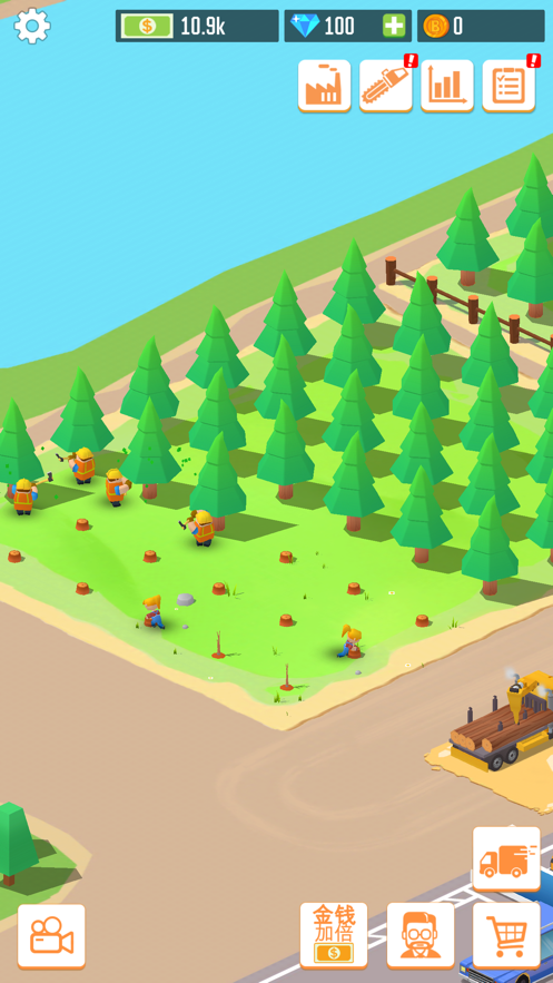 1、建立自己的木材帝国,成为木材大亨,不断的来砍伐让你来获得收益;
