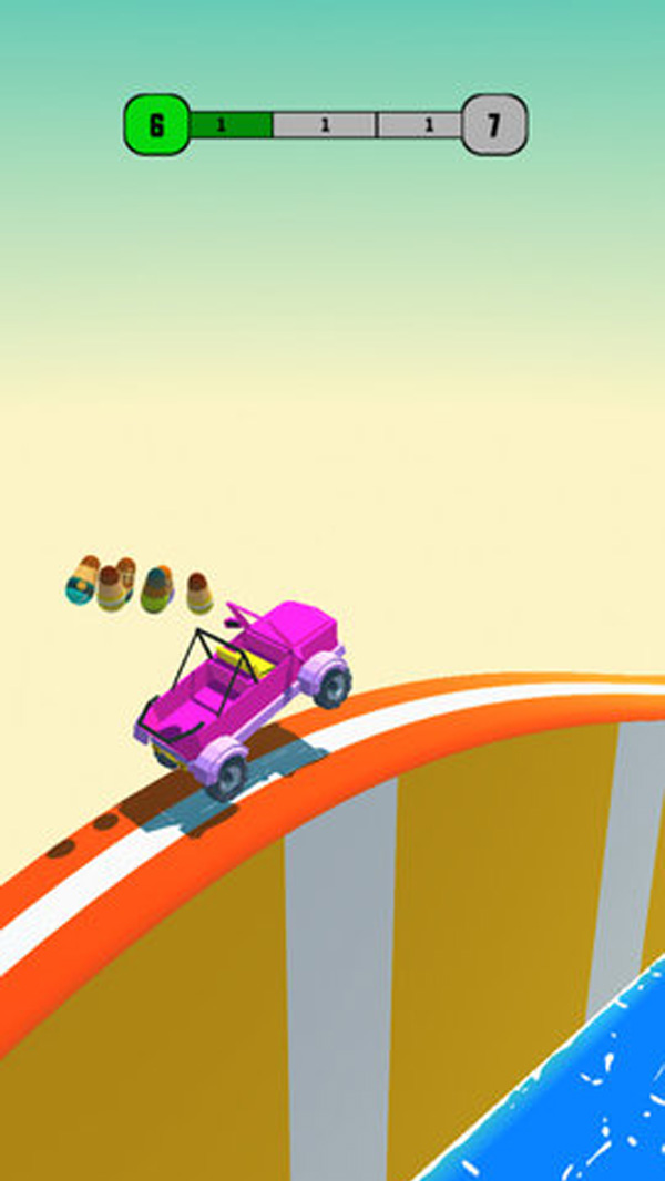 1.玩家只需要点击手机屏幕中的小车控制它的速度,按住时间越长速度越快,松手速度会减慢;