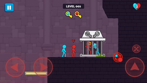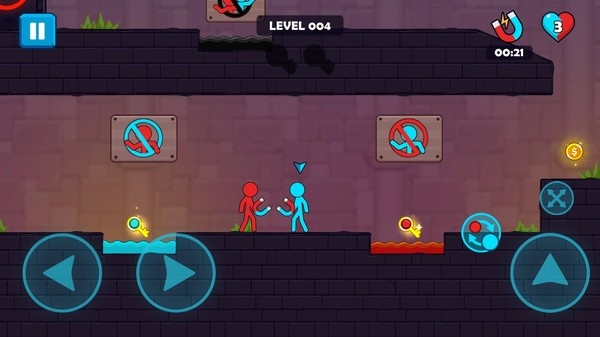 冰火火柴人游戏是一款双人闯关的游戏,游戏中有两个颜色的火柴人,蓝色和红色火柴人需要分别控制,玩家可以在游戏中任意的切换控制,游戏中的关卡种类非常的多,玩家在这里可以尽情享受闯关的快感,有些关卡中需要蓝色和红色火柴人互相的配合才可以过关哦。