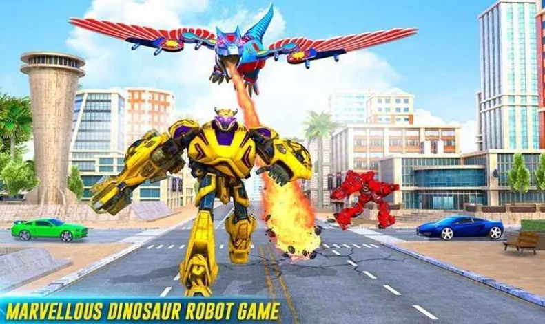 飞行恐龙机器人手游是一个非常热血沸腾的动作冒险类型的手游,在这个充满高科技的未来世界,游戏玩家需要用自己的实力去击败更多的敌人,每一场战斗都可以给你带来非常热血沸腾的感受,玩起来也是非常的惊险刺激,这游戏中的画面也是非常震撼的,体验战斗带来的乐趣。