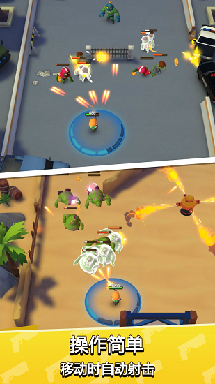 轻松游戏,单手操作,划屏移动,移动时自动射击