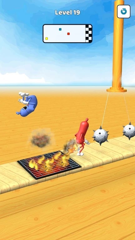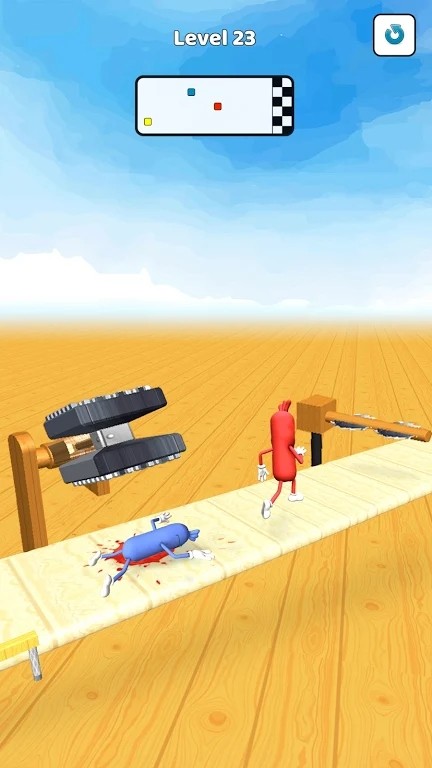 古怪的香肠作为一个为玩家提供趣味跑步跳跃体验的游戏,玩家将在游戏内操控一只香肠进行闯关,在你前进的过程中你会遇到很多的障碍物,比如火、刀,你要及时躲避,不然就会被消灭。