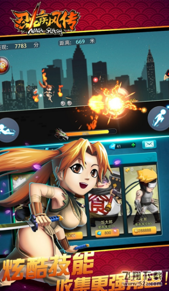 忍龙疾风传手机游戏作为一个非常炫酷的跑酷类手机游戏,超多知名忍者都将在这里出现,你能够操纵他们展现你的极致操作。每个忍者的技能特效都不同,你需要根据地形选择不同的忍者来进行这场跑酷。超精致的画面和炫酷的技能,让无数玩家喜爱不已。