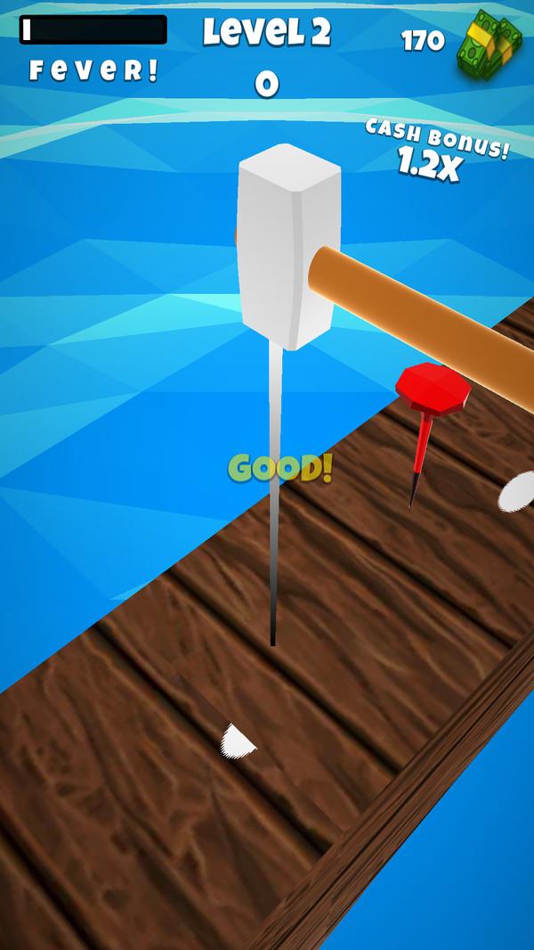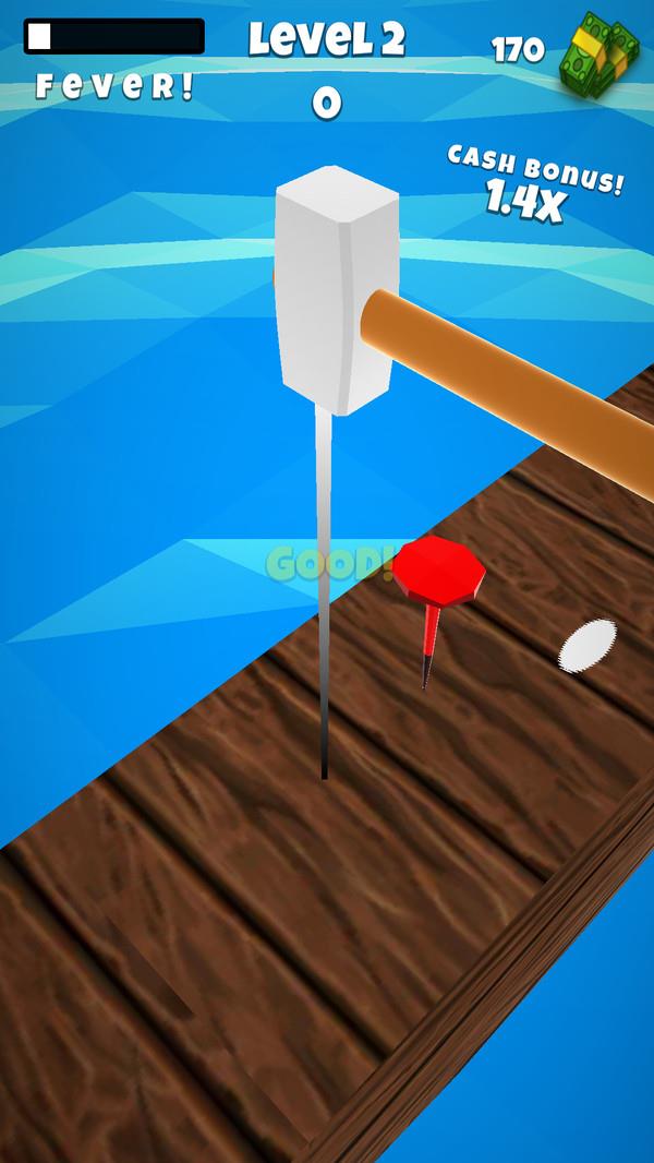 这作为一款非常有意思的解压类游戏,在游戏里玩家可以释放自己的心情,让生活变得更加轻松,玩家可以选择不同的锤子,利用各自的属性和特点进行很好的把钉子钉到木头里,在钉钉子的过程中也会遇到障碍物的阻拦,要想尽各种办法进行很好的闯关,闯关成功获得丰厚的奖励,心里是无比喜悦的。