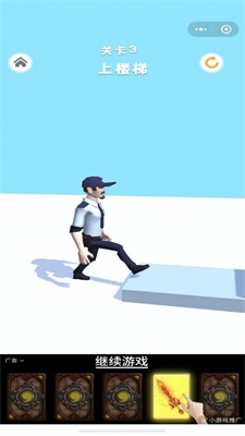 2.玩家可以自由的控制角色,快速的进行上楼梯,挑战各种不同的关卡。
