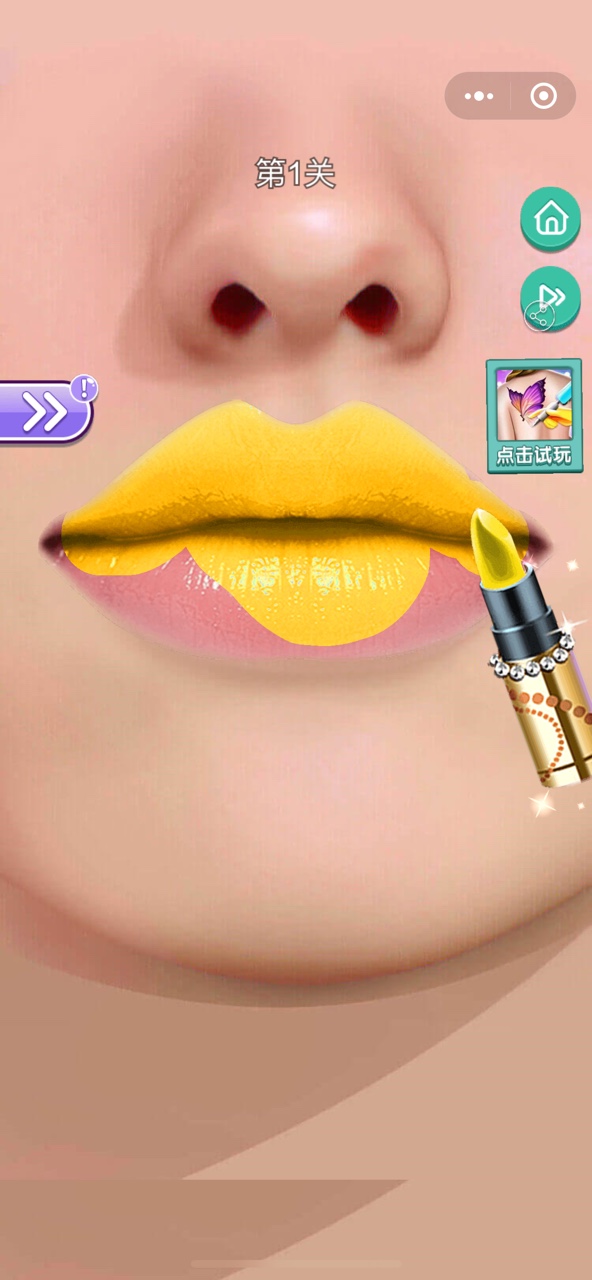 1、玩法比较的简单,终点是选择一个好的口红颜色,才能让你顺利过关;