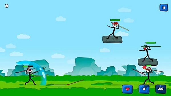 在敌人火柴人瞄准和射击。拖放你的手指进行定位和射击。