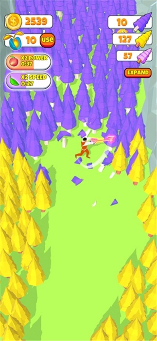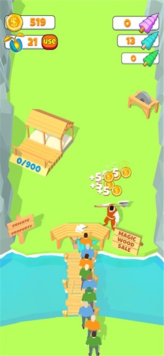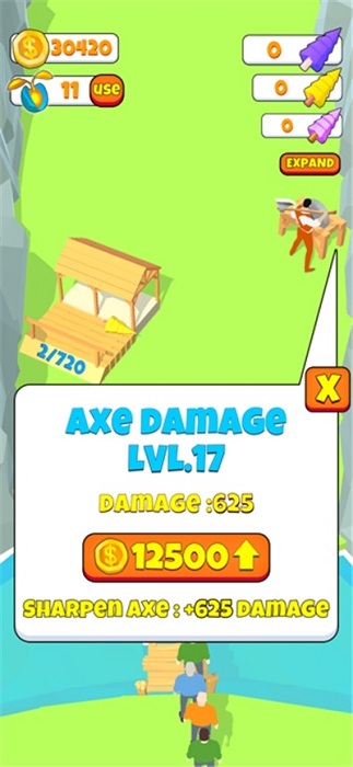 c、通过砍伐树木来赚取更多的金币,利用金币就能升级你的员工,提升他们的砍树效率。