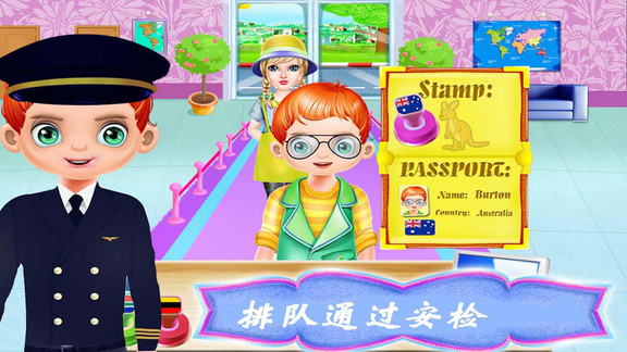 这是儿童假期的飞机模拟游戏。机场管理人员将帮助您安全送到登机。