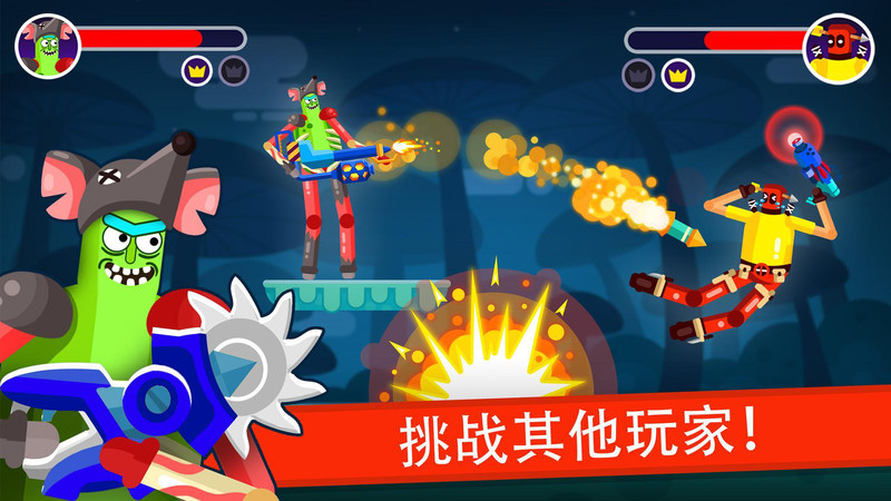 1、在这个游戏里面所有的角色都是经典的火柴人形象,每一个火柴人都有着不同的战斗方式和玩法。