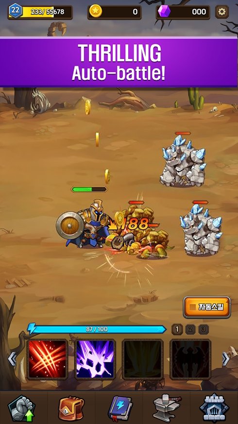 在自动战斗闲置模式下享受游戏并控制技能使用。