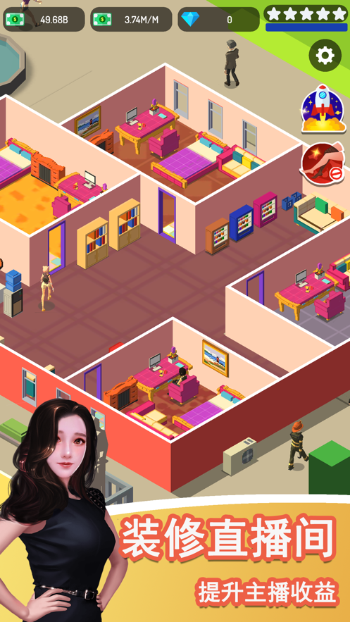 直播开始啦手游是一个经营一家主播公司为题材的模拟类游戏,一起来让你们的公司壮大起来,你需要招募更多具有才华的主播来到你们的公司,通过这些主播的精彩表演能够吸引更多的粉丝观看和互动,给予大家的生活带来更多的娱乐性,同时给公司带来更多的收益。