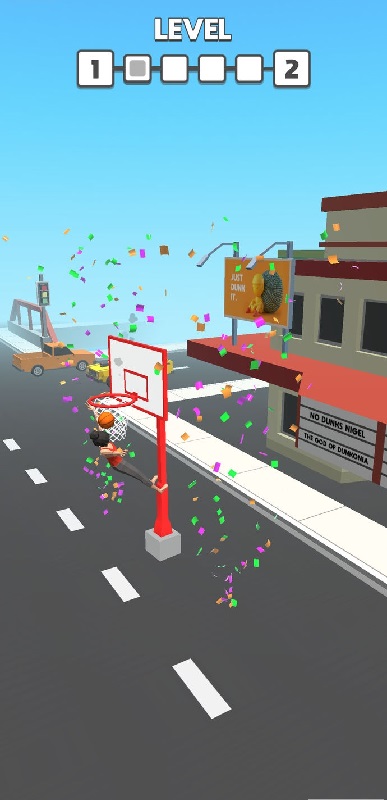 2、游戏的关卡难度逐渐增加,玩家去做出各种的酷炫扣篮动作,玩家成功的进行闯关获得高分;