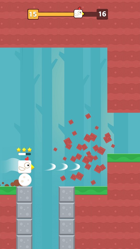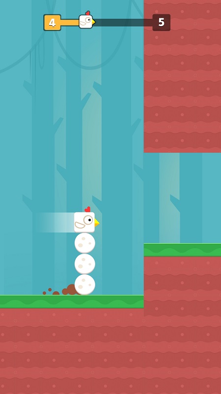 c.游戏中你可以点击屏幕使小鸟下蛋来让小鸟位置升高,利用高度来翻过山川、悬崖等障碍物。