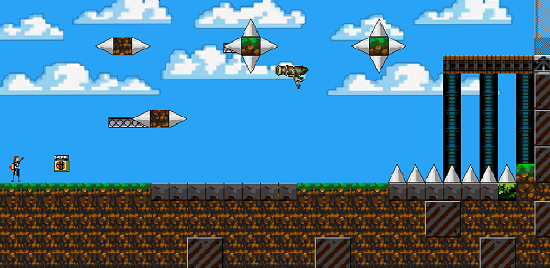 2、他必须克服障碍并击败敌人来收集硬币,并找到通往完整关卡的大门。
