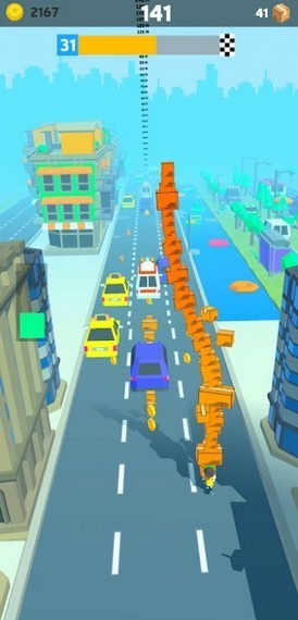 5、手中的箱子不断的推高起来,将平衡保持到终点,来试试你的操作技巧,道路上的车辆要全部躲开