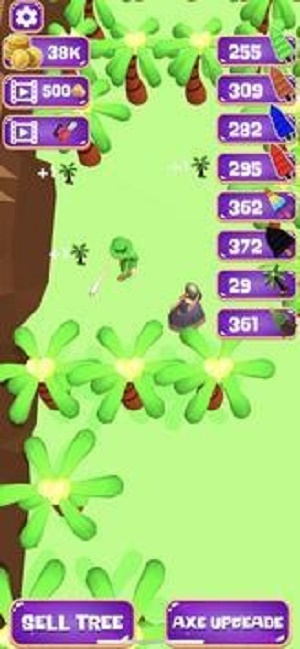 2.玩家收集硬币可以换取更尖锐的斧头,从而来砍到更多的树木。