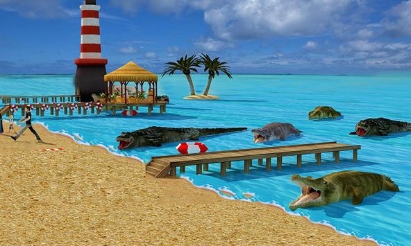 饥饿的鳄鱼生存狩猎作为一款非常休闲手游,在游戏中突然有非常多的鳄鱼跑到了居民生活的沙滩上,严重地危害了居民的生活以及休闲,为了保证自己的安全,你需要拿起武器去和鳄鱼战斗,要十分注意那些鳄鱼超级凶残,他们吃的越多,攻击就会更加厉害,一定要注意。
