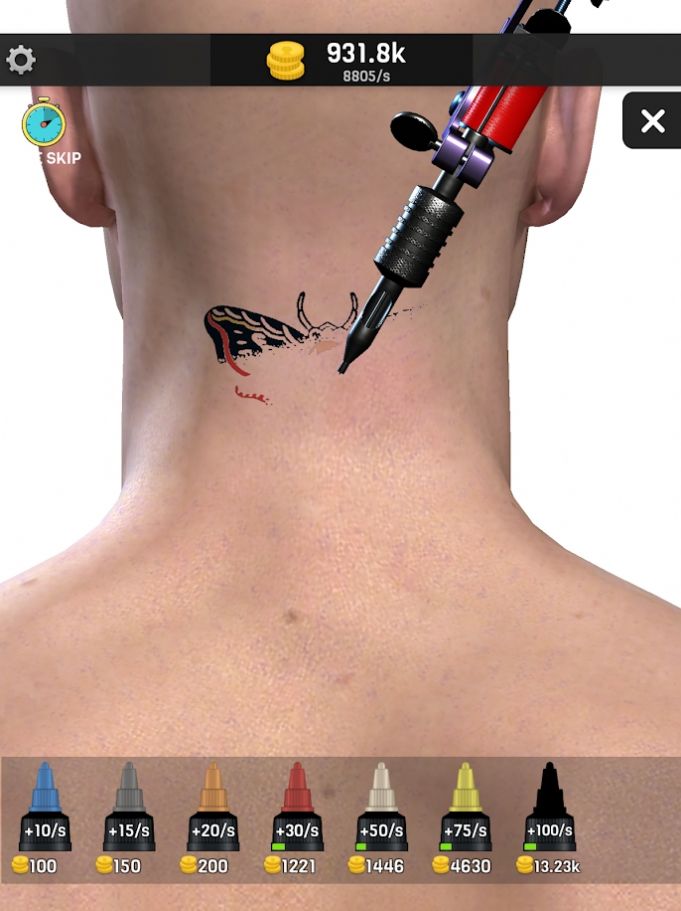 1、为顾客服务赚钱,解锁更高级的工具、颜料,轻松制作纹身