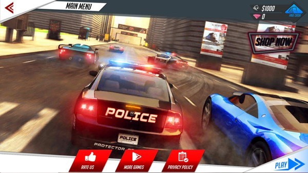 你是一个警察英雄,追逐暴徒并帮助消除犯罪是你的任务,在城市街道追逐罪犯车辆,逼停撞击,直至将其打败。