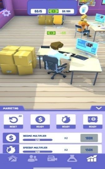 3、闲置公司办公室游戏,有趣的像素的游戏玩法,豪华的公司,购买更多的办公用品,在有限的时间里,也可以让公司有更多的变化,玩家需要赚更多的钱,尽快提升公司的档次,公司的场地更加的宽敞