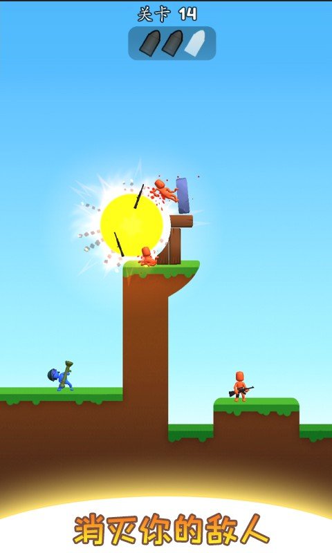 4、爆破男孩超爽快的横版抛射游戏,玩家根据真实的物理效果进行抛物线射击,有限的炮弹以及复杂的地图内容,你需要面对不同的敌人,超多丰富的武器解锁可以帮助你针对不同的boss,喜欢的玩家们赶快下载爆破男孩试一试吧