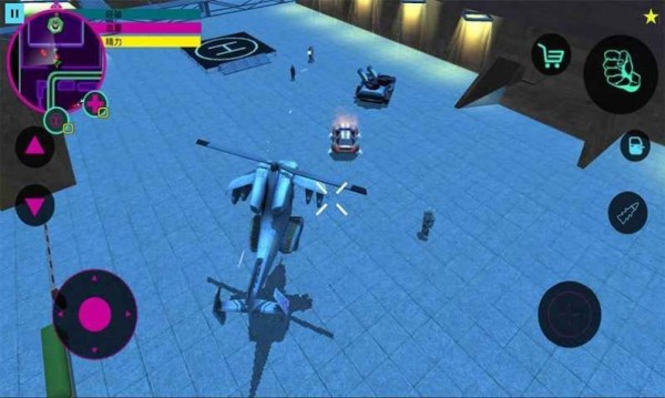 3、城市英雄赛博朋克战场游戏依照GTA打造一个封闭城市地图乱战游戏,全新的赛博朋克夜之城,战斗随处打响,收集武器或者打败敌人获得武器,无拘束的参与战斗,游戏中还能驾驶直升机,战斗机,坦克等等重型装备
