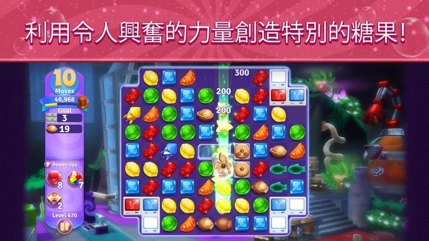 Wonka梦幻糖果世界作为一款非常不错的休闲益智游戏,游戏的画面超级漂亮五颜六色,给人的视觉感是非常好的,里面有很多的糖果,可以进行很好地匹配,只要三个以上就可以进行很好的消除,里面还有大量的关卡,每一个关卡设计的都是非常独特的,经过精心设计的闯关成功获得积分。