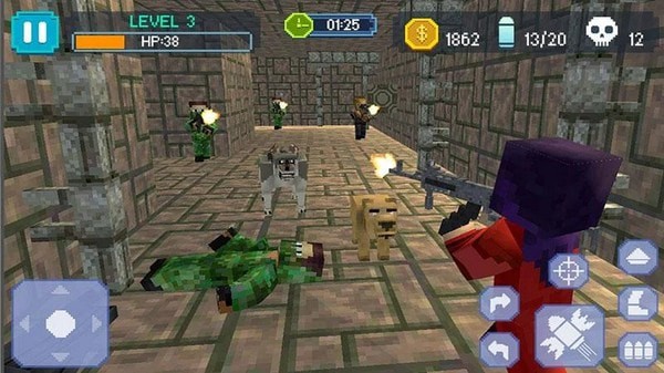 3、像素猎人生存作为一款方块像素画风打造的动作冒险手游,游戏有着超级有趣的玩法模式,玩家在这里可以自由冒险探索,游戏内玩家可以选择各式各样的武器去战斗冒险,利用高超的射击技术去消灭掉所有敌人,喜欢的玩家快下载吧
