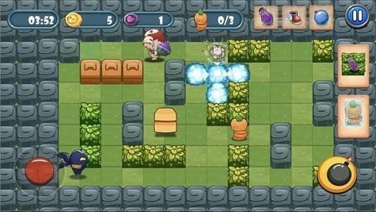 在游戏中,玩家可以自由放置炸弹,炸弹的破坏力很强,玩家必须避免自己使用炸弹。
