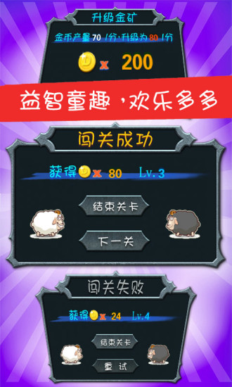 4、儿童顶山羊火爆来袭!智力脑力大碰撞!一大波黑山羊基因突变,对羊村发动了进攻,可爱的白羊到底能否防守住?考验智力的时候到了,好玩有趣,让孩子们在快乐中不断成长!从里面赚取更多的金币,顶走凶猛的黑山羊吧