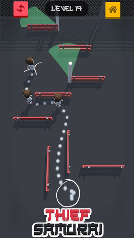 1、武士越狱游戏,采用了上帝视角,让玩家可以更好地掌握大局。根据房屋里的各种情况,规划出合理的路线,从监狱里出来,在严密的守卫眼皮底下逃出去吧。