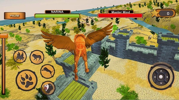 3、飞狮模拟器作为一款想法十分新奇的模拟飞狮动作冒险类型的游戏,游戏中玩家要扮演一个不一样的狮子,一个有着翅膀能够飞翔的狮子,在这里你可以自由的翱翔于天地之间,飞在空中巡视着你自己的领地,向胆敢入侵你领地的一切生物发起攻击,用你强壮的四肢,锋利的压制,尖锐的指甲撕碎它们