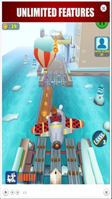 1.全新的冒险跑酷游戏玩法,各种卡通形象,可以选择使用。