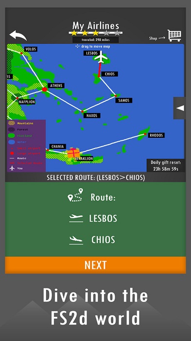 飞行模拟器2d(FS2d)是专门为智能手机和平板电脑设计的复杂飞行模拟器,该模拟游戏是首款包含主流3d飞行模拟器的所有重要元素的模拟游戏:系统故障以及常见的2d游戏元素:漂亮的手地图,自定义飞机纹理和有趣的游戏,真正的空气动力学,动态天气系统,昼夜周期,风/阵风系统,