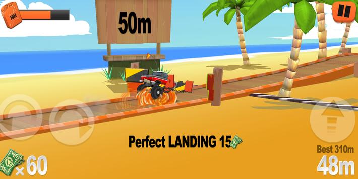 通过每次比赛获得的奖金, 你可以增强你的卡车不要让你的卡车翻车, 否则你会输掉这场游戏尽量跑出更远的距离, 看你能不能成为冠军!