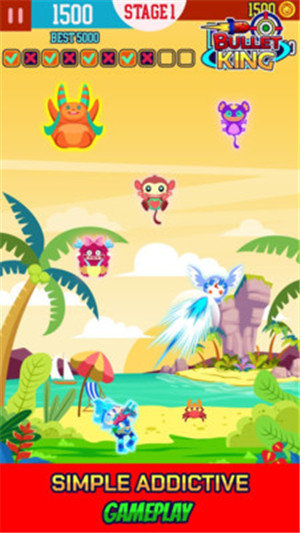 1、子弹射击王作为一款射击动作手游,游戏中的元素大部分都是采用水果化身的,基本都是水果变成的,为了拯救世界,打败险恶的力量,玩家们需要射击掉所有的怪物,喜欢挑战的来体验吧