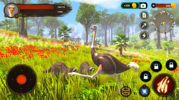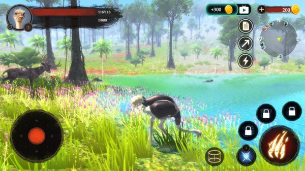 4、鸵鸟模拟器作为一款模拟动物生存游戏。玩家将会在鸵鸟模拟器游戏中化身成位一只鸵鸟开始你的生存之旅,目标就是在危机四伏的大自然生存下去