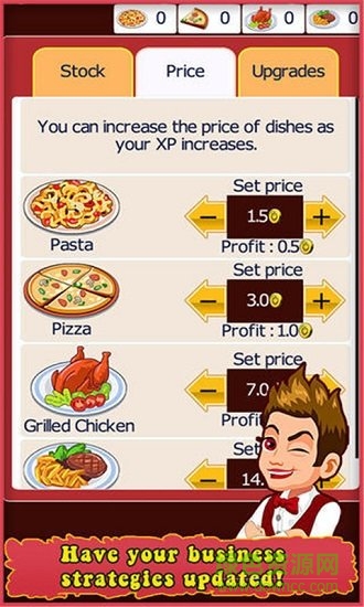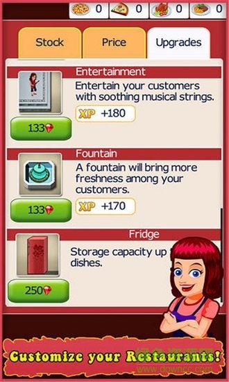 体验开一家西式餐厅的乐趣!游戏里你可以准备好各式美食,雇佣员工,把顾客领到餐桌前,点菜,上菜,到结账都很有趣,!在你的领导下,餐厅的生意一定越来越好。