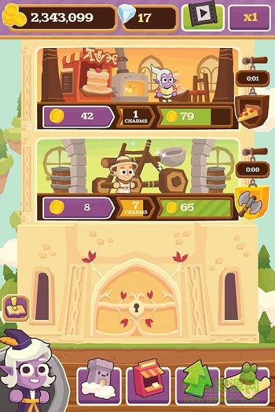 《点击城堡 Charming keep》是一款轻松的点击放置类游戏。游戏中玩家可以通过不断点击城堡或怪物赚取赏金,不断将城堡的规模发展壮大,游戏的画风清新可爱,很适合休闲玩家。不断点击城堡里的金库即可获取金币,玩家可以使用金币来购买各种设施从而提高城堡的赚钱能力,这是一款非常适合消磨时间的游戏。